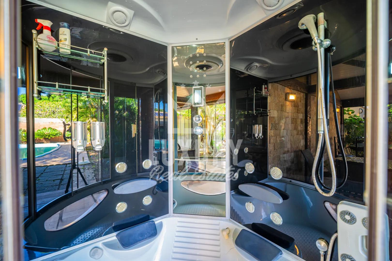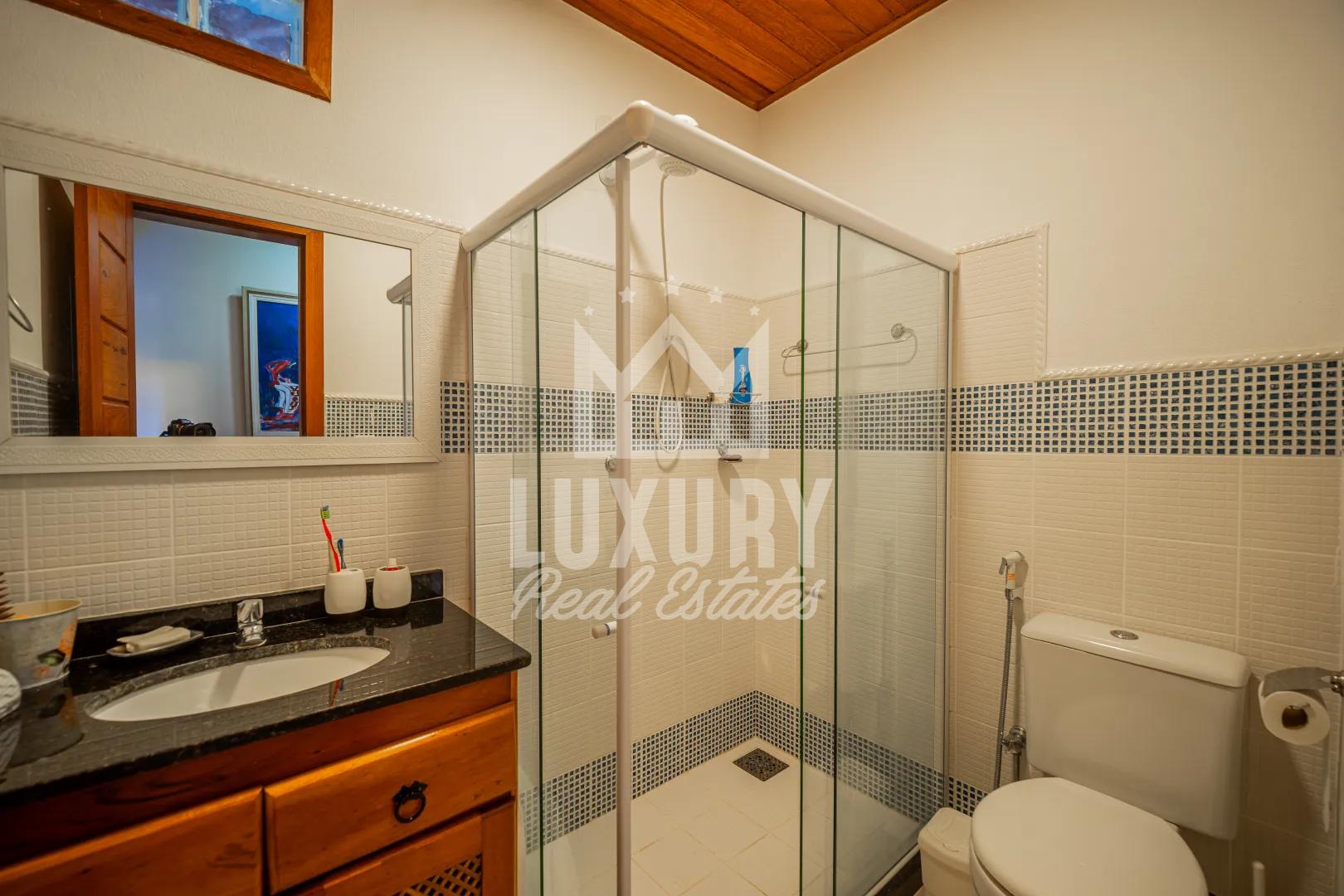 A casa apresenta uma distribuição inteligente dos ambientes, com áreas sociais bem integradas, proporcionando praticidade no dia a dia e uma experiência agradável para moradores e hóspedes. Seus espaços oferecem boa ventilação, iluminação natural e privacidade, características fundamentais para imóveis de médio/alto a alto padrão.